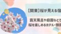 宿泊 関東の桜が見える宿10選!露天風呂や庭園などで桜を楽しめるホテル・旅館 この記事は、関東エリアで桜を楽しめる宿をご紹介します。露天風呂や庭園、テラスや客室から桜を眺められるホテル・旅館をピックアップしました。まずは神奈川・東京・千葉の宿をまとめています。今後は栃木や茨城な... 2026.02.20 宿泊